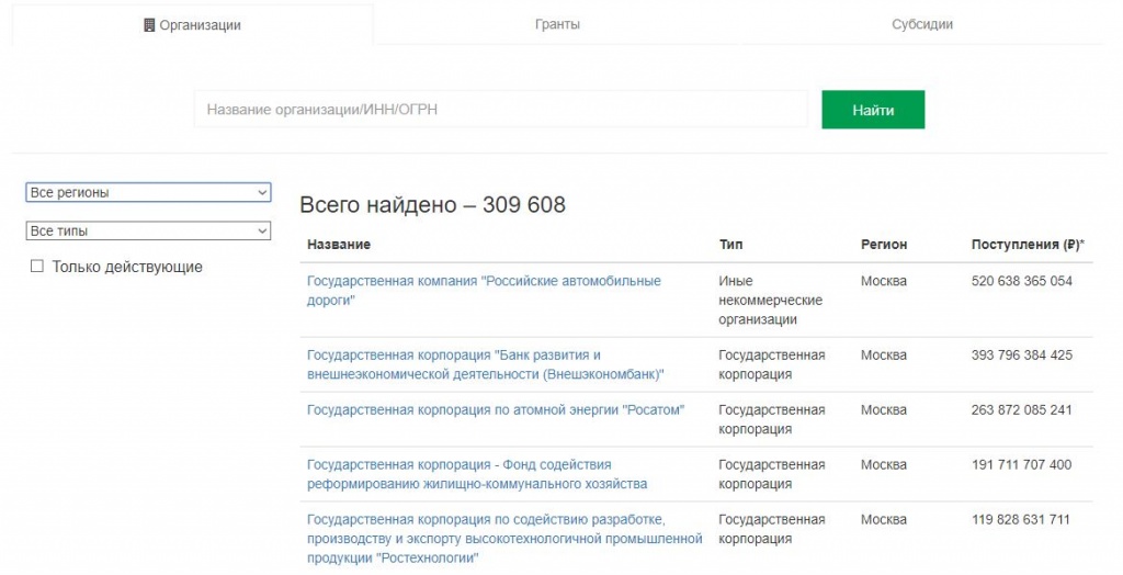 – Да, и организаций, и субсидий, и контрактов на портале скоро будет больше, потому что, во-первых, к организациям добавятся те НКО из реестра Минюста, которые не прошли первичную фильтрацию. А во-вторых, мы собираемся включить туда НКО, которых нет в реестре Минюста.