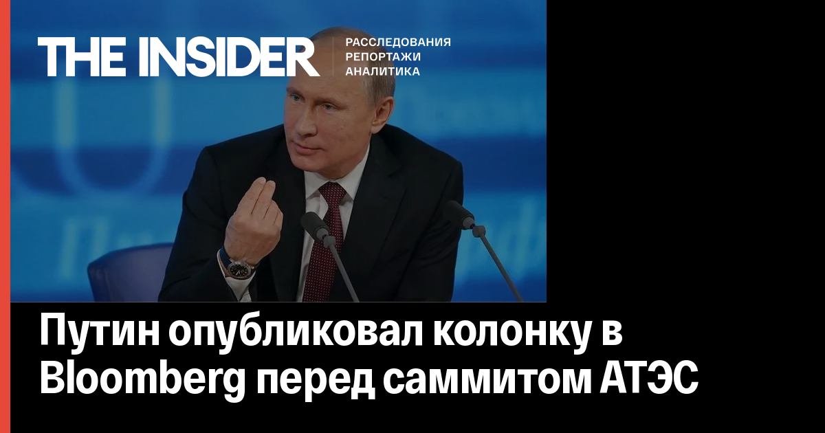 Президент России Владимир Путин написал колонку для агентства Bloomberg в преддверии саммита Азиатско-тихоокеанского экономического сотрудничества, который стартует 10 ноября во вьетнамском Дананге.