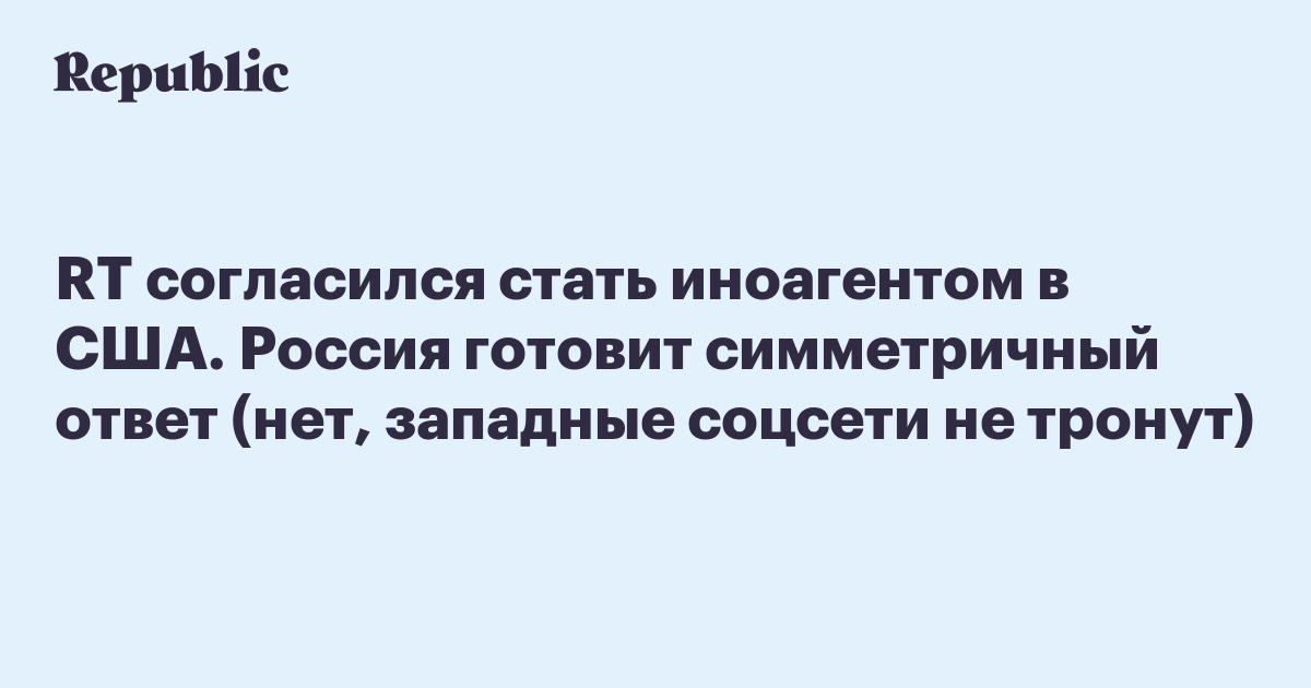 RT согласился стать иноагентом в США. Россия готовит симметричный ответ (нет, западные соцсети не тронут)