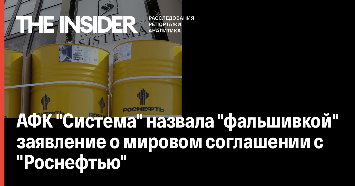 Судья в ходе заседания по апелляции в рамках дела «Роснефть» - АФК «Система» сообщила о поступившим от АФК заявлении о мировом соглашении. При этом, судья отметила, что текст соглашения не приложен. Как сообщает «Интерфакс», адвокаты АФК в свою очередь заявили, что не направляли такой документ в суд и «это какая-то фальшивка».