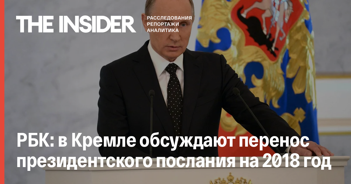 Ежегодное послание президента Федеральному собранию может быть перенесено с декабря 2017 года на 2018 год. Об этом сообщает РБК со ссылкой на источник, близкий к администрации президента, и еще два близких к Кремлю источника.