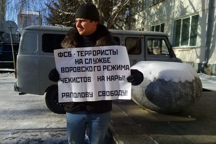 Знакомый Ряполова Алексей Баранов провел пикет 15 ноября. Он встал у здания регионального управления ФСБ с плакатом в поддержку осужденного.