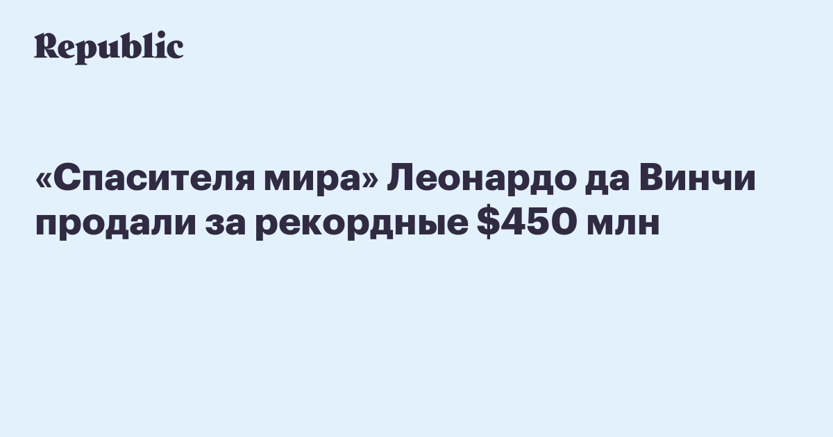 Картину «Спаситель мира» Леонардо да Винчи продали на аукционе Christie’s за рекордную сумму – $450 млн. Об этом сказано на сайте аукционного дома.
