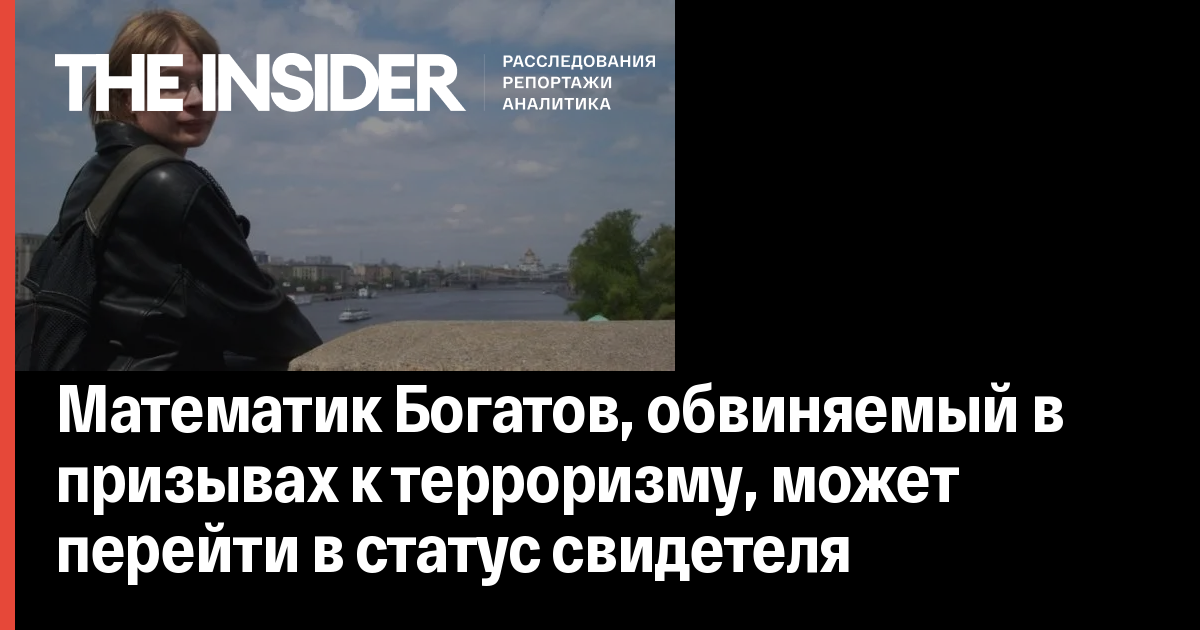 Математик Дмитрий Богатов, которого обвиняют в призывах к терроризму и организации массовых беспорядков, может перейти в статус свидетеля по делу. Об этом сообщает ТАСС со ссылкой на источник, близкий к ходу расследования.