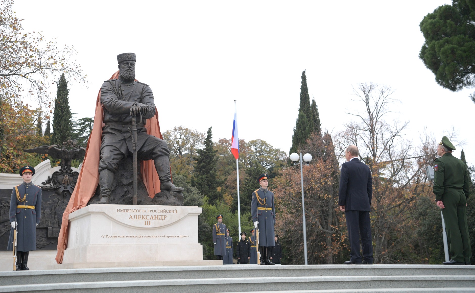 Открытый 18 ноября в аннексированном Россией Крыму памятник императору Александру III сразу же подвергся критике за искажение исторических фактов. Главный объект критики – горизонтальная стела, на рельефе которой изображены достижения эпохи российского самодержца. Памятник царю привлек к себе особое внимание в связи с выступлением на его открытии президента Владимира Путина.