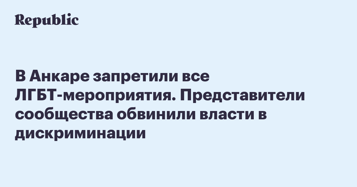 Анкара запретила любые мероприятия, связанные с ЛГБТ. В список попали кинопоказы, театр, семинары, интервью, встречи и выставки. В сообщении пресс-службы губернатора города речь идет о заботе властей об «обеспечении мира и безопасности нашей провинции». Власти считают, что такие мероприятия могут спровоцировать людей на проявление «публичной ненависти и насилия».