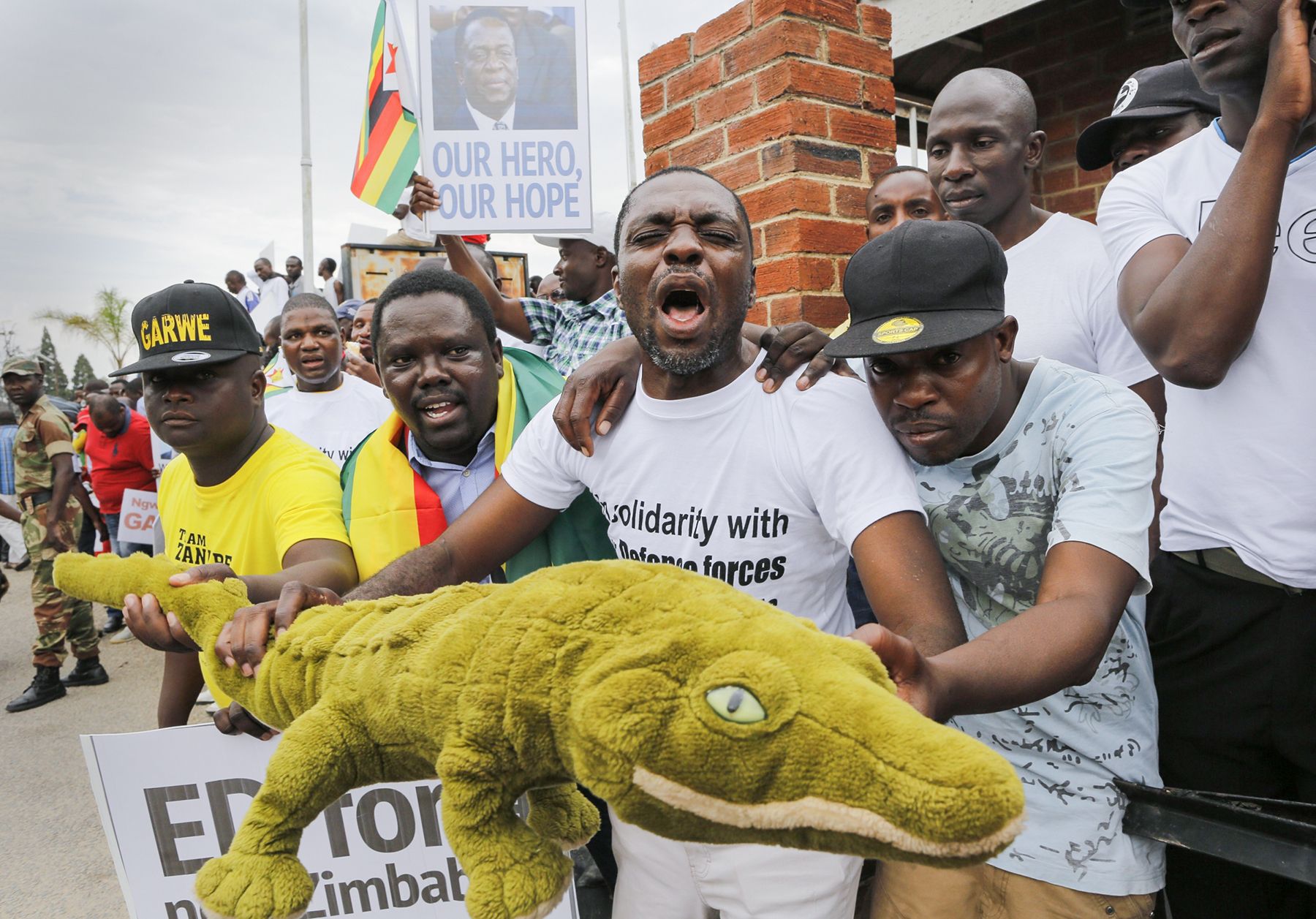 В Зимбабве встретили будущего президента страны по прозвищу Крокодил. Фотография
