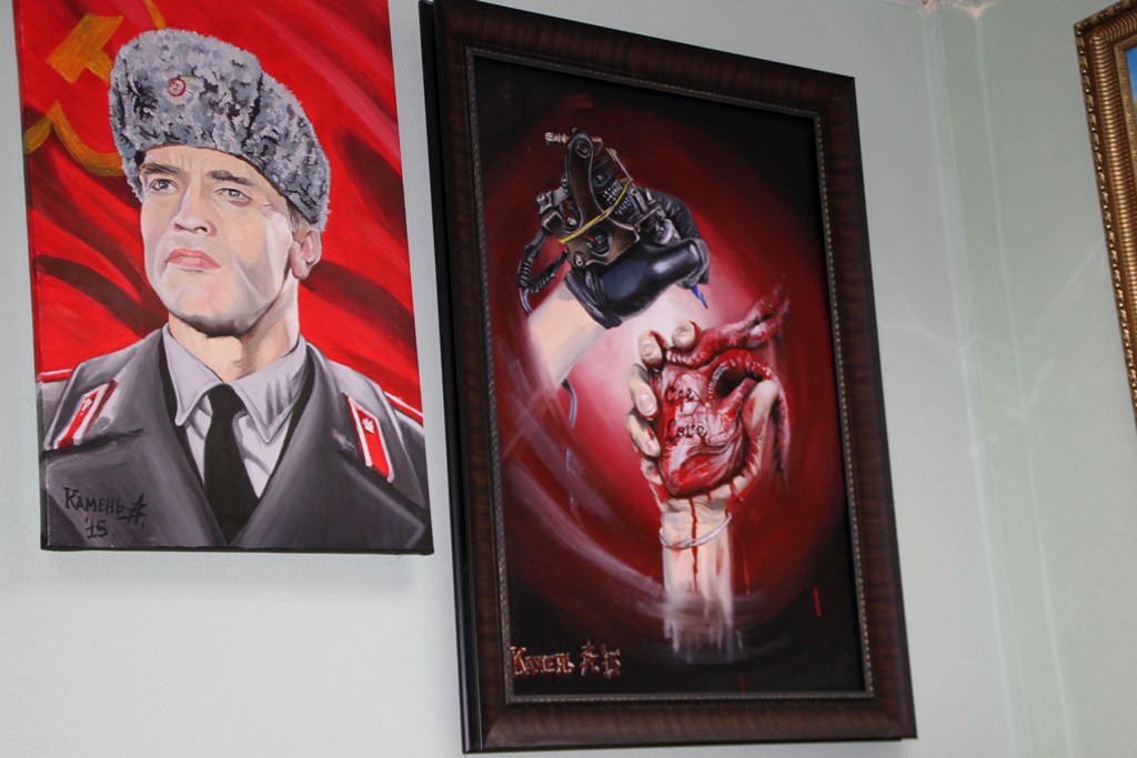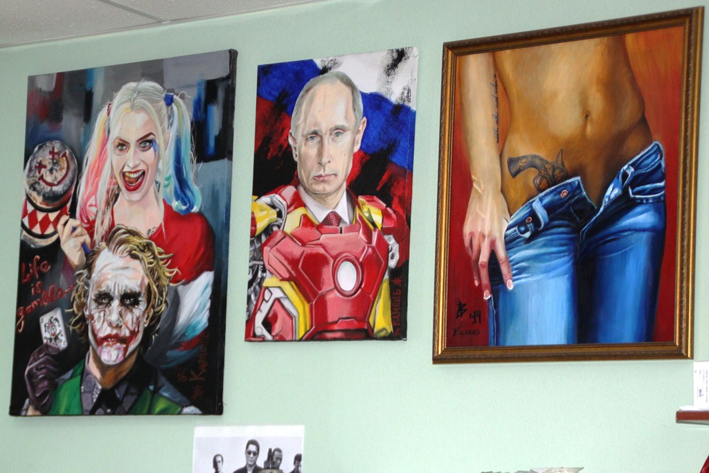 В последних числах октября я принес свои работы в музей. Путина сразу отказались выставлять. Потому что он у власти. Кто именно дал указания – я не в курсе, я их всех в первый раз вижу. Вроде как руководитель музея. Остальные картины – с Медведевым, Сталиным и Лениным – висели два дня. 1 ноября было официальное открытие. Я пришел по пригласительному и обнаружил, что моих картин нет. Меня даже не предупредили, просто убрали их. Якобы кто-то позвонил из администрации и попросил об этом. Надо же чешуей блестеть. Я разбираться не стал, что да почему. Нет, так нет. Забрал картины и повесил у себя в тату-салоне. После этого инцидента понял, что нам с официальными представителями "творческой элиты" не по пути. Рисовать то, что тебе скажут сверху, быть кому-то угодным я не собираюсь. Политизированное искусство мне не нравится.