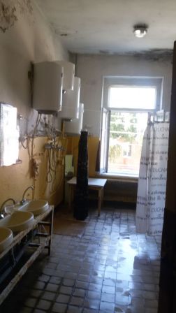 Однажды катастрофа действительно чуть не произошла: один этаж рухнул на другой. Двое детей успели выбежать из помещения, никто не пострадал. В итоге ремонт военным делать не стали, а жаловаться запретили под угрозой увольнения. Из-за повреждения сантехники поставили биотуалеты на улице. Обслуживала здание ОАО «Славянка», полагаю, что командующий и его заместитель не могли не знать о ситуации