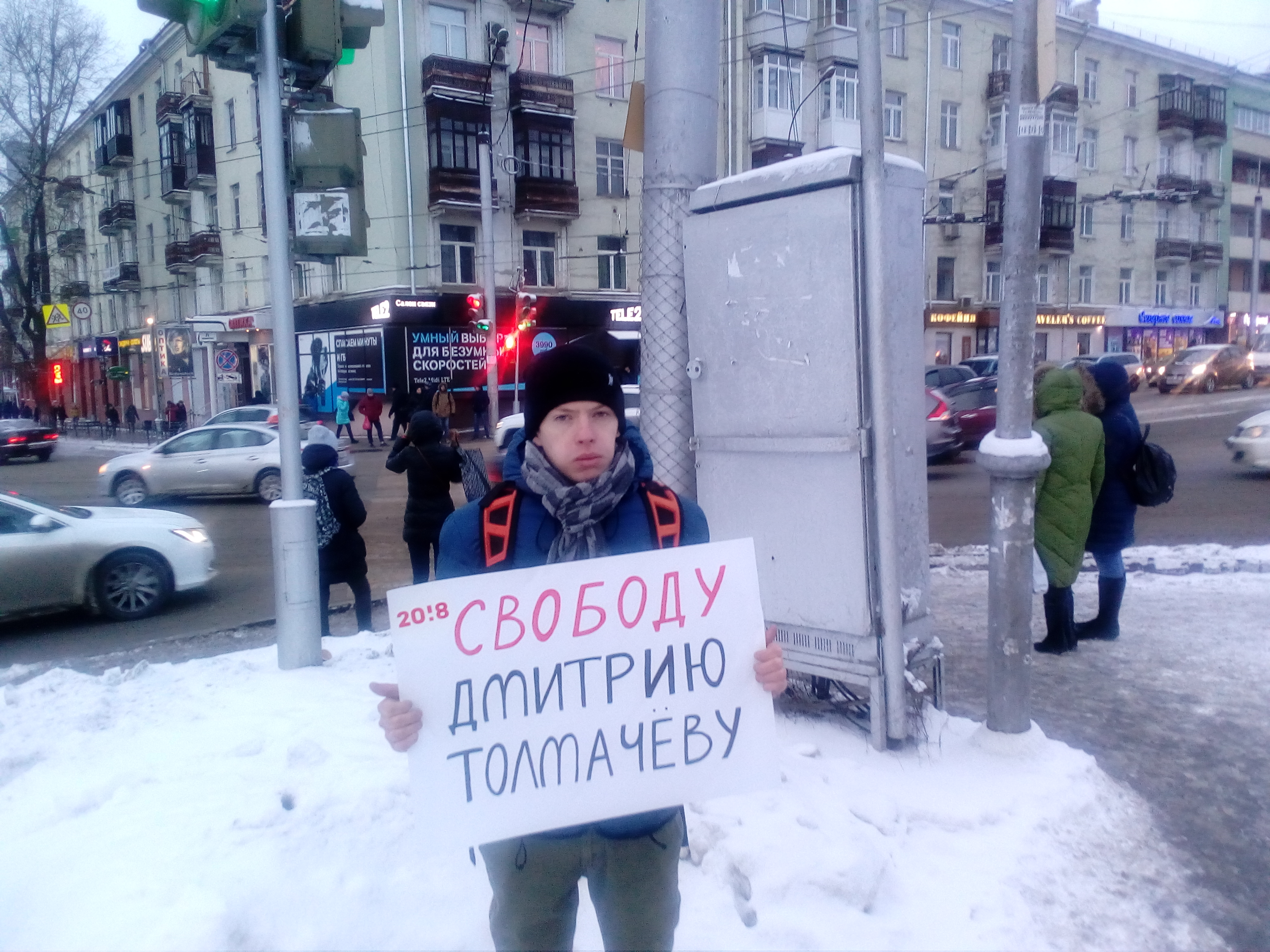 Все пикеты проходили в самом центре Иркутска. После акций протеста пикетчики поехали к спецприемнику, встретить Дмитрия Толмачева. Срок его ареста истек сегодня.