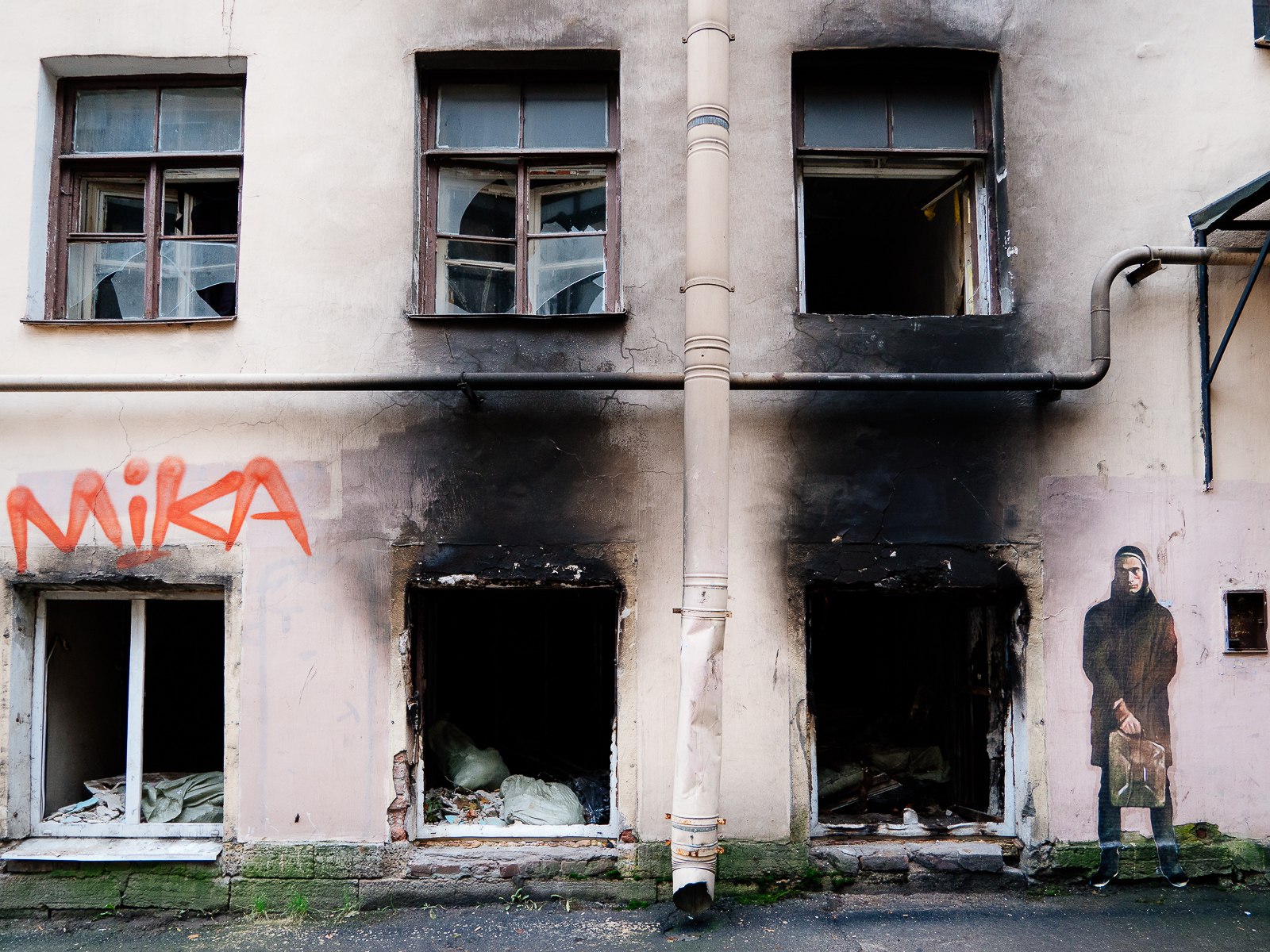 Здание на Лиговском — один из заброшенных домов в центре Петербурга. Своего рода намек на то, что место «главного акциониста России» опустело.
