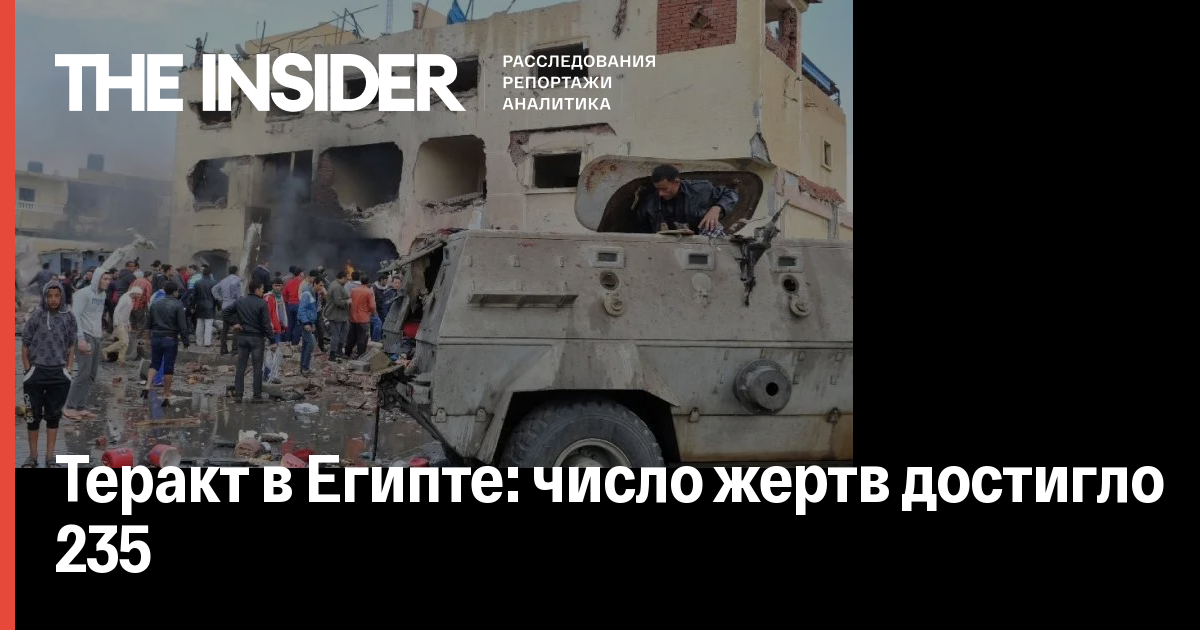 В результате атаки на мечеть на севере Синайского полуострова погибли 235 человек, сообщает «Интерфакс» со ссылкой на египетское государственное телевидение. Среди погибших есть дети. Ранения получили около 130 человек.