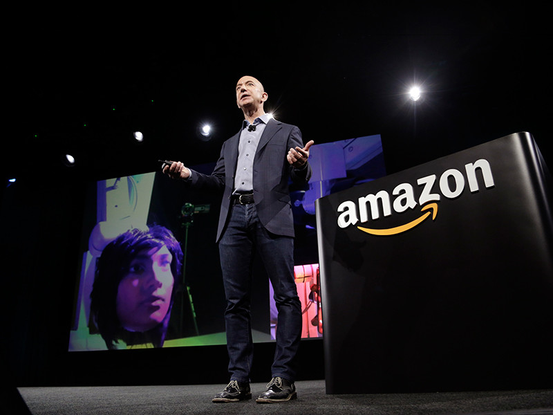 Amazon является крупнейшей в мире компанией, продающей товары и услуги через интернет. Она была основана Безосом в 1994 году. От продажи книг и музыкальных пластинок компания постепенно перешла к торговле видеозаписями, видеоиграми и бытовой электроникой, а также первой в США предложила пользователям ее сайта услугу платного скачивания фильмов с возможностью их просмотра без подключения к интернету. Оборот Amazon за прошлый год составил около 136 млрд долларов.