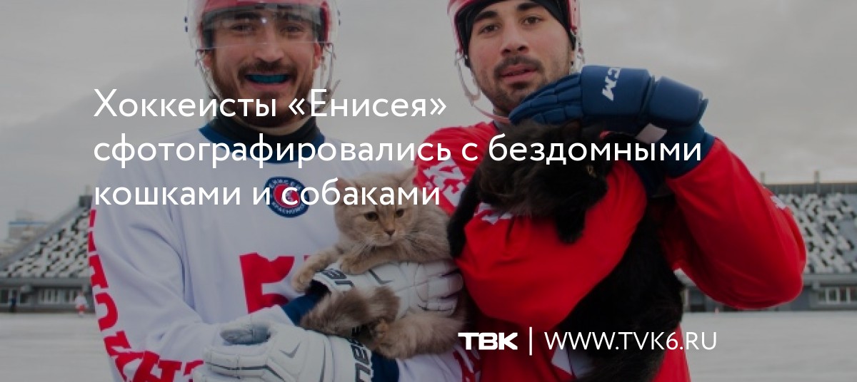 Хоккеисты «Енисея» сфотографировались с бездомными кошками и собаками