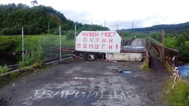 Вообще-то мост через Колу развалился еще летом. Аккурат через день после того, как селяне поместили на аварийном сооружении плакат: «Нужен мост. Путин, помоги!» Прослышали, что глава государства собирается в Мурманск, и решили, что мимо Шонгуя ему никак не проехать. Но Путин не приехал. А хлипкий мост 1951 года постройки обращения к гаранту не выдержал: рухнул на следующий день, едва не угробив рыбака.