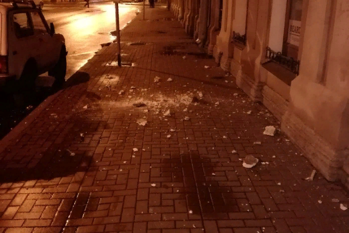 С исторического здания в Центральном районе Петербурга обрушилась штукатурка. Год назад администрация района писала, что угрозы обрушения нет