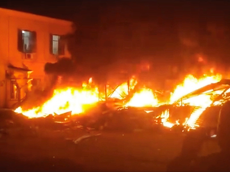 Мощный взрыв прогремел поздно вечером в понедельник, за ним последовал пожар. Сотрудники полиции эвакуировали жильцов близлежащих домов из-за опасности новых взрывов. Известно, что в магазине находились газовые баллоны.