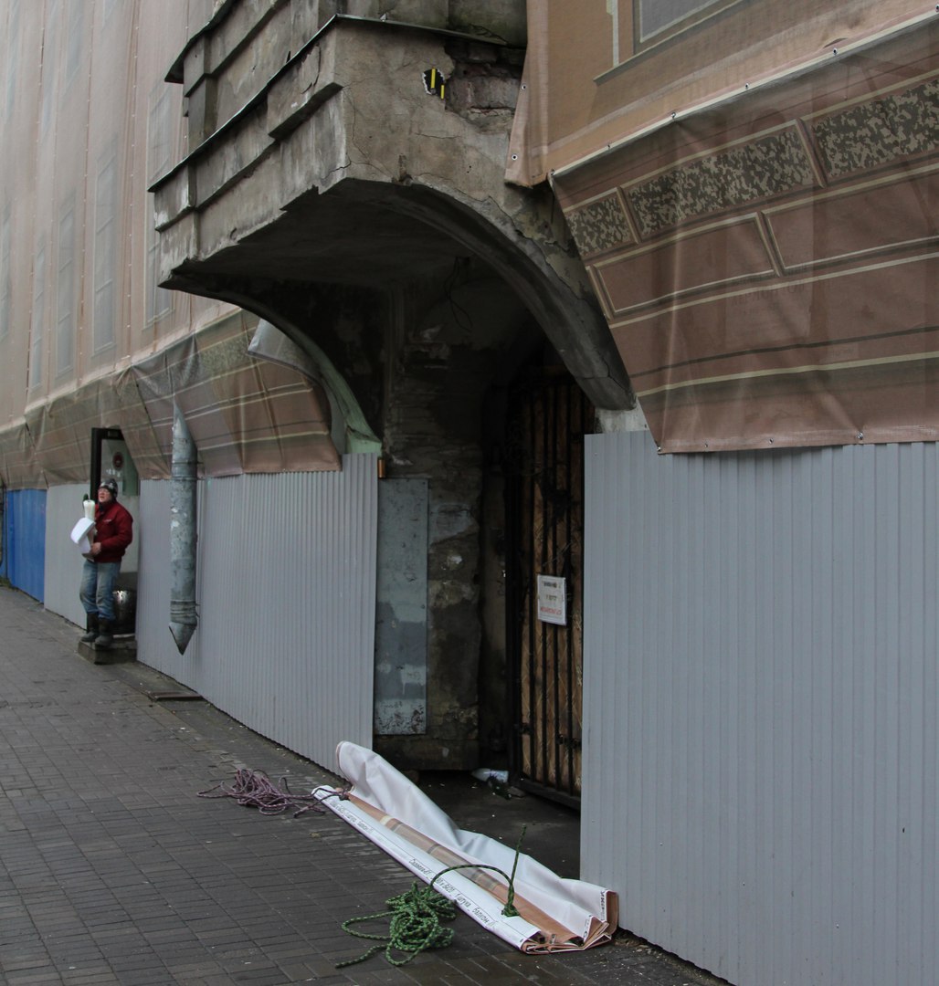 Мариинский театр закрыл мемориальную доску поэту Михаилу Лермонтову тканью, имитирующей фасад здания. Дом № 61 на Садовой улице, на котором расположена доска, находится в управлении театра.