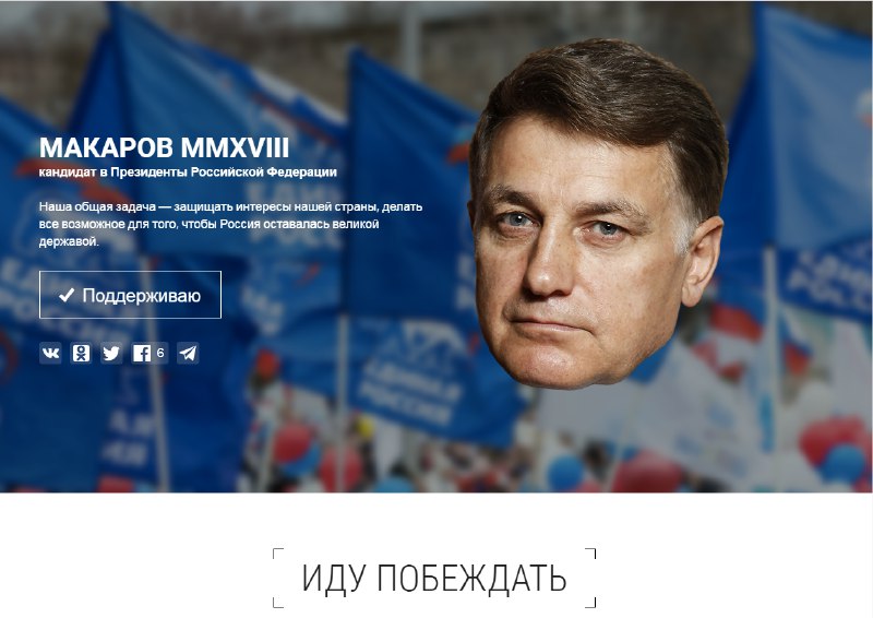 Фейковый сайт с президентской программой Макарова появился в сети 26 ноября. На нем помимо изображения головы спикера Закса была иконка с флагом Проректората Богемии и Моравии — государства, которое в 1939 году учредил Третий рейх.