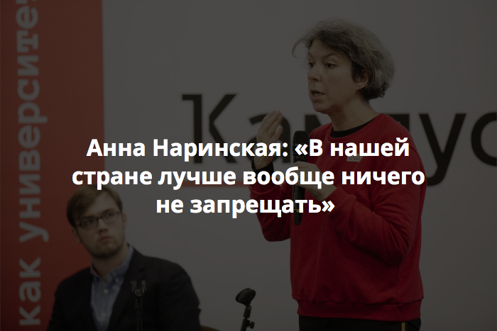 На городском фестивале «Кампус», который «Бумага» провела в конце октября, выступала литературный критик Анна Наринская.