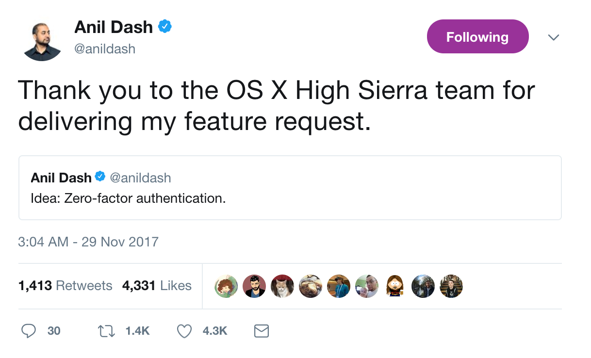 28 ноября в High Sierra заметили серьезную уязвимость: оказалось, что если в окне, требующем ввести логин и пароль (кроме экрана входа в систему), ввести логин root и пустой пароль и несколько раз нажать «Ввод», активируется режим «суперпользователя». Это открывало злоумышленнику возможность делать в системе практически все, что вздумается.