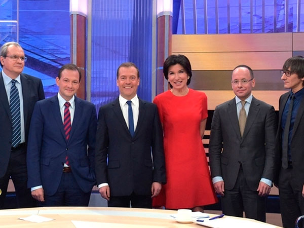 Журналисты с Димтрием Медведевым government.ru/news/30348/ Дмитрий Медведев дал традиционное, уже десятое интервью ведущим российским телеканалам. То, что российский премьер-министр не является великим оратором, в принципе, ни для кого не открытие, но на этот раз разговор вышел максимально скучным — как будто специально.