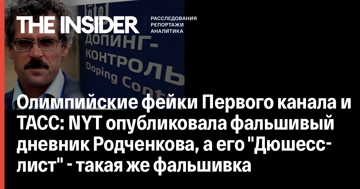 Олимпийские фейки Первого канала и ТАСС: NYT опубликовала фальшивый дневник Родченкова, а его "Дюшесс-лист"