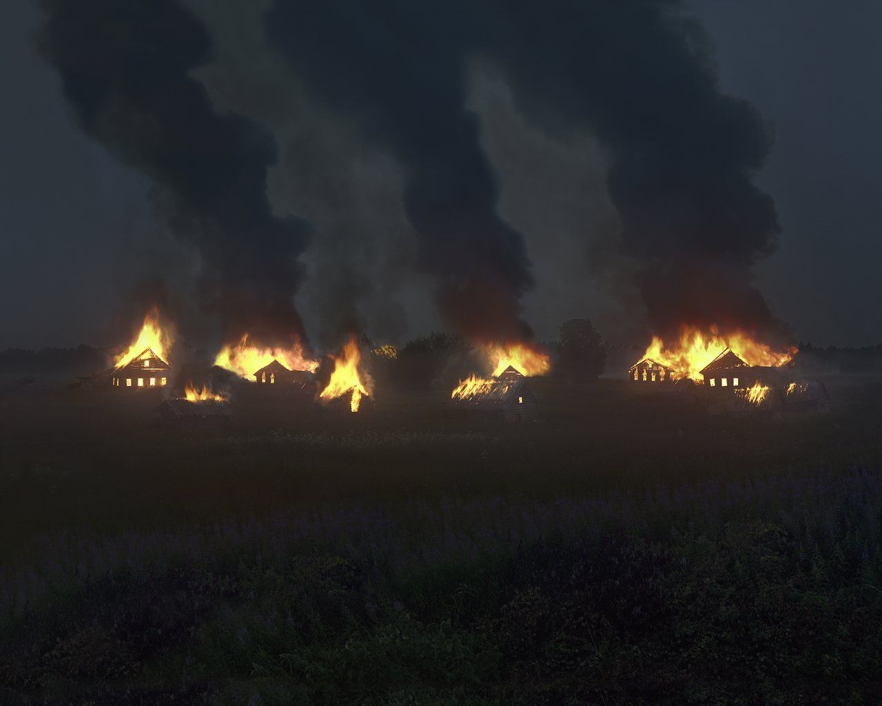 In a new photo project dedicated to the decline of Russia’s villages, Moscow artist Danila Tkachenko set fire to several empty village homes. Speaking to Colta.ru, Tkachenko said he deliberately selected abandoned homes and spent several days studying what the last tenants had left inside the houses, before burning them down. “The whole thing is very Russian,” Tkachenko explained. “You take it and then you burn it to hell.” The project is called “Homeland” and all the photographs were taken at dusk.