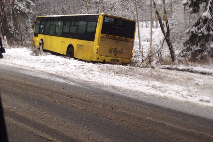 В Курортном районе Петербурга рейсовый автобус съехал в кювет