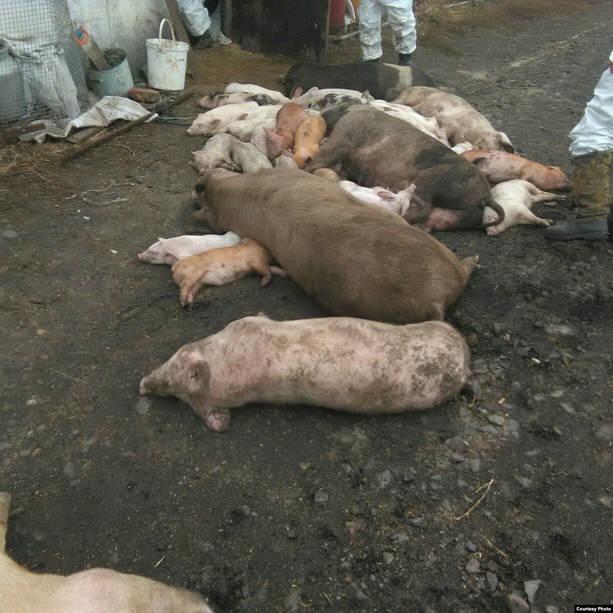 Татьяна Лукина, заместитель председателя общественной организации ”Союз сельского подворья”, созданной в сентябре после митинга крестьян, выступавших против массового уничтожения свиней, считает, что АЧС – спланированная акция: