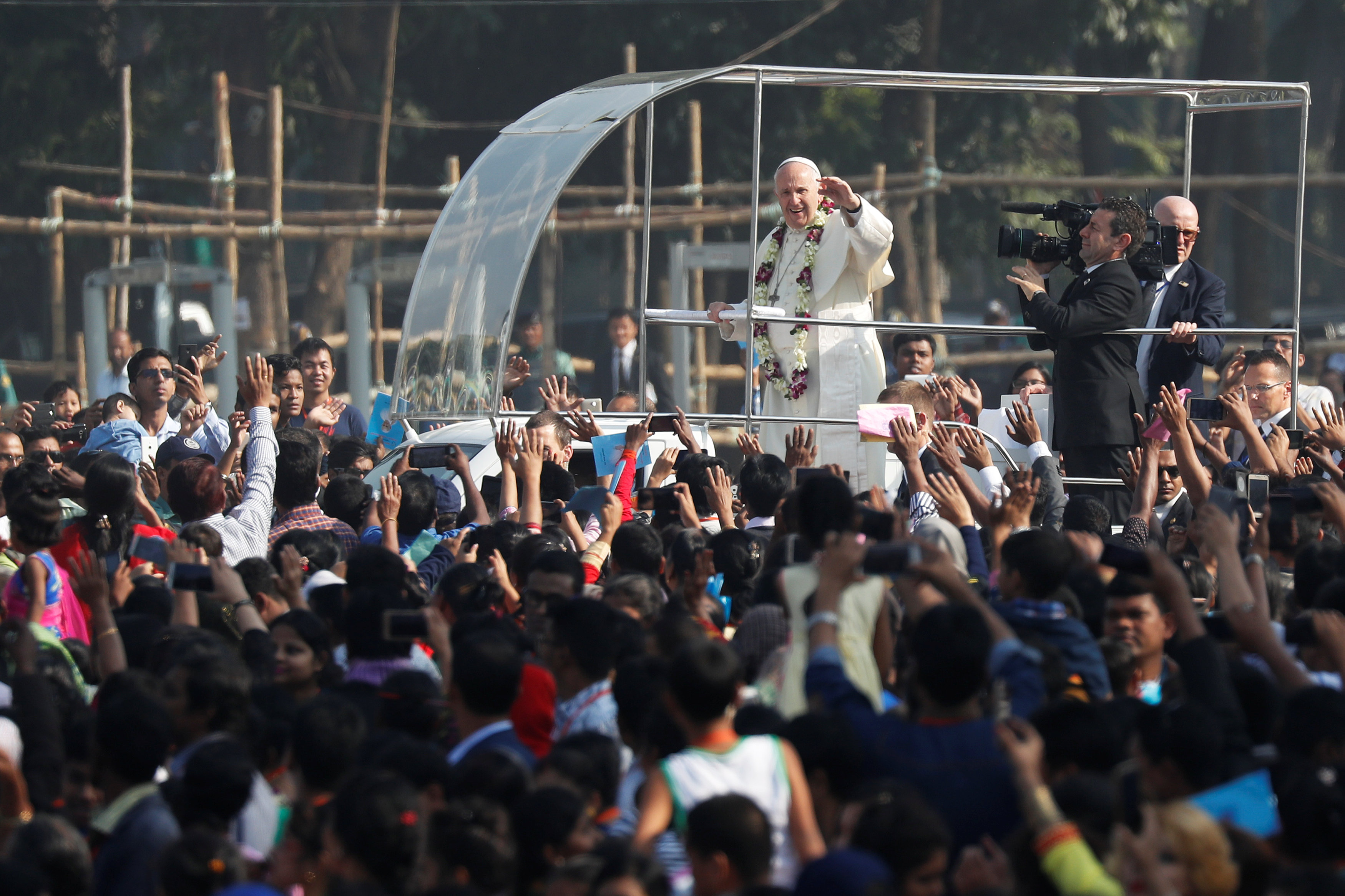 Франциск неоднократно выступал в защиту мусульман-рохинджа, около 620 000 из которых бежали в Бангладеш с августа в надежде избежать того, что Соединенные Штаты и ООН назвали "этнической чисткой" в Мьянме (Бирме). Насилие против мусульман-рохинджа началось в результате военных репрессий после нападений повстанцев рохинджа в штате Ракхин в Мьянме.