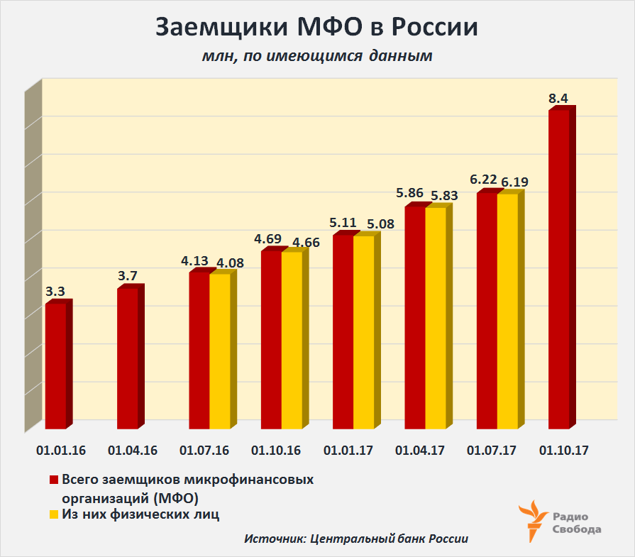 В МФО, как правило, обращаются граждане с доходом на семью от 30 до 50 тысяч рублей [в месяц] и без постоянного места работы, пояснял в середине года зампред ЦБ РФ Владимир Чистюхин: “Мы боремся за существование рынка МФО, так как он решает вопрос финансовой доступности заемных средств для населения и компаний”.