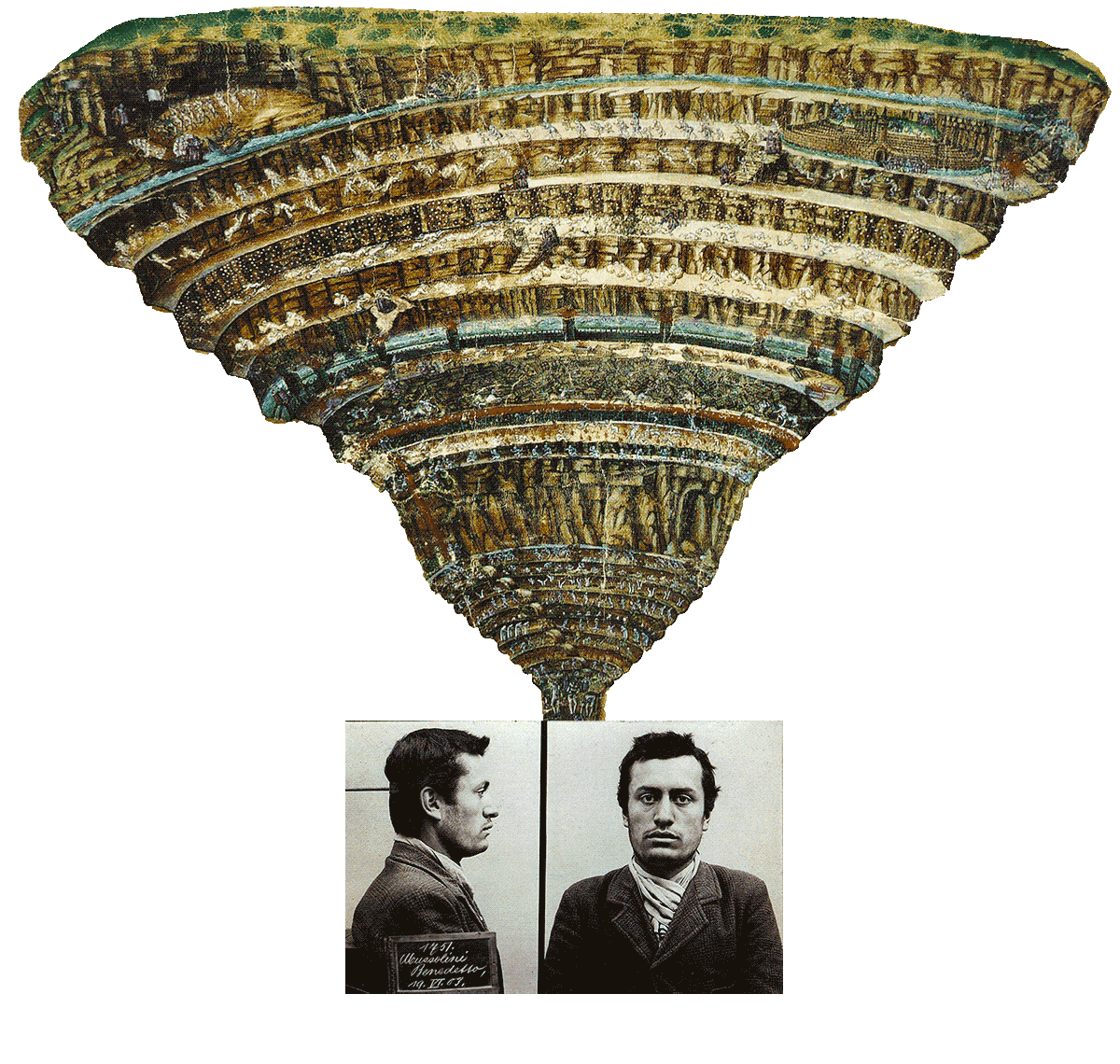 Дуче с юности обожал «Божественную комедию» и мог цитировать чуть ли не целиком. В своих статьях он часто ссылался на Данте, воспевая его поэтический гений и называя его первым итальянским националистом. В 1921 году, выступая перед толпой, Муссолини говорил (точнее, кричал), что «во имя Алигьери он мечтает об Италии будущего, свободной и богатой, моря и небеса которой полны итальянским флотом», — и тот факт, что Алигьери скорее мечтал об имперском Риме, а не об Италии и ее ВМФ, нисколько Муссолини не смущал.
