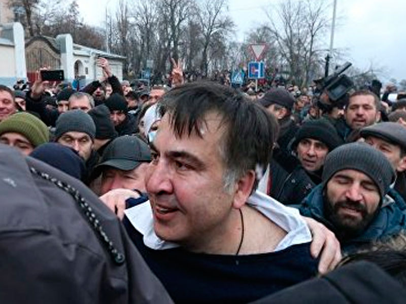 Освобожденный Саакашвили в окружении своих сторонников призвал провести новый митинг, который положит конец «власти барыг», как он называет правительство Петра Порошенко.