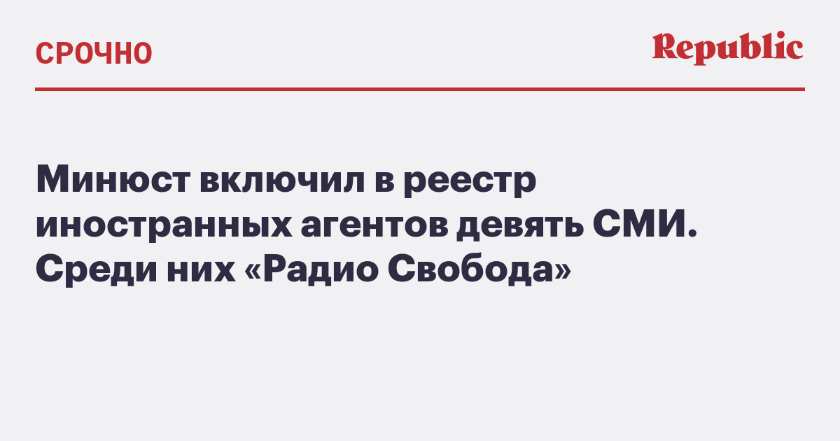 Минюст включил в реестр иностранных агентов девять СМИ. Среди них «Радио Свобода»