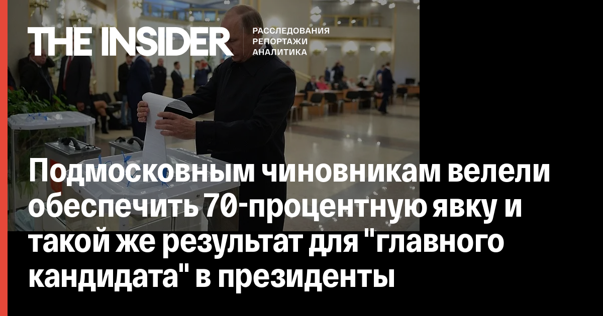Подмосковным чиновникам велели обеспечить 70-процентную явку и такой же результат для "главного кандидата" в президенты