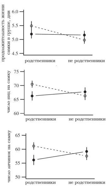 Несколько лет назад специалисты Оксфордского университета обнаружили у дрозофилы следующую особенность [2]. Одну самку ссаживали с тремя не родственными ей самцами. Если эти трое были братьями, самка откладывала больше яиц, чем после пребывания с самцами, не состоящими в родстве. Кроме того, братья реже дрались друг с другом и жили дольше. Важность родственных связей была доказана и для рыбок Hetrandria formosa [3].