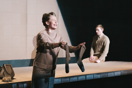 Эффект «Солнечной линии» строится на сочетании нежности и брутальности, иронии и патетики, и эта игра регистрами требует от исполнителей одновременно и высокого мастерства, и отречения от ремесленности. Секрет правильного исполнения пьесы кроется в лавировании между жанром, произнесением текста на большой скорости, характерностью и способностью остаться собой. Жанр стилизованной семейной драмеди дается обоим легко: зрители смеются, узнавая в героине Пересильд весь диапазон женского от мягкости до стервозности, в герое Бурковского — сходящего с ума от иррациональной логики партнерши архетипического мужчину. Текст Вырыпаева летит как комета, временами врезаясь — тем самым производя комический эффект — в попытки сцены объяснить все бытовой логикой.