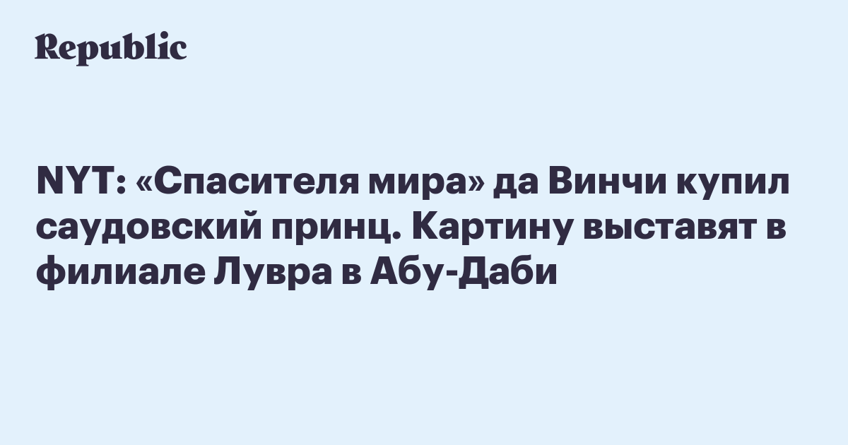 NYT: «Спасителя мира» да Винчи купил саудовский принц. Картину выставят в филиале Лувра в Абу-Даби