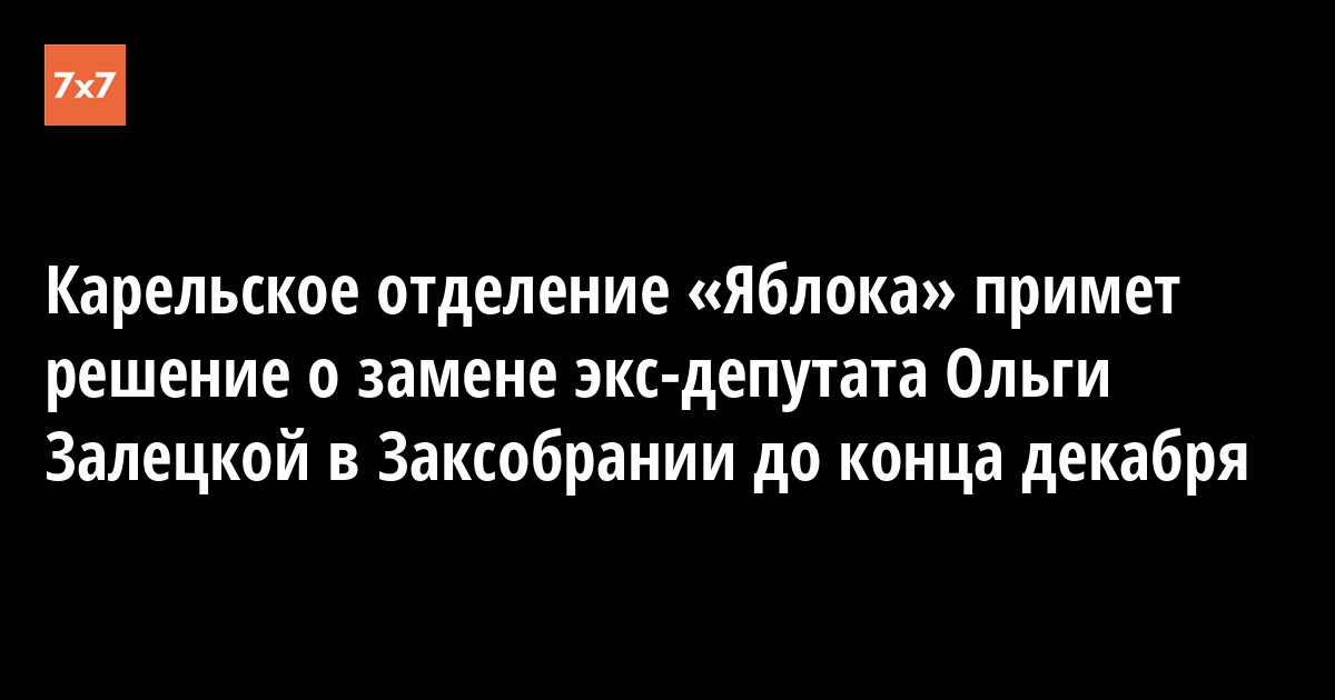 Законодательное собрание Карелии 7 декабря приняло решение о досрочном прекращении полномочий депутата фракции «Яблоко» Ольги Залецкой. Основанием для этого стал вступивший в силу приговор суда, по которому Залецкая признана виновной в мошенничестве и осуждена на четыре года лишения свободы условно. Региональное отделение партии «Яблоко» теперь должно решить, кто займет вакантное место в Законодательном собрании.