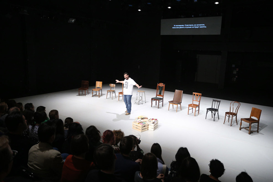 © Андрей Гордеев В сущности, «Наизусть» — это спектакль о сопротивлении. Объясняя свой замысел, Родригес ссылается на антиутопию Рэя Брэдбери «451 градус по Фаренгейту», где литература была объявлена вне закона: противники режима запоминали тексты наизусть и сами служили друг другу живыми книгами. Фантастика не так уж и далека от реальности: Тьяго приводит пример Надежды Мандельштам, которая разучивала с группами из десяти гостей стихи репрессированного мужа, чтобы спасти его наследие. «Когда стихотворение знают наизусть 10 человек, — говорит идейный учитель Родригеса Джордж Стайнер, — ни КГБ, ни ЦРУ, ни гестапо уже ничего не могут с ним сделать».