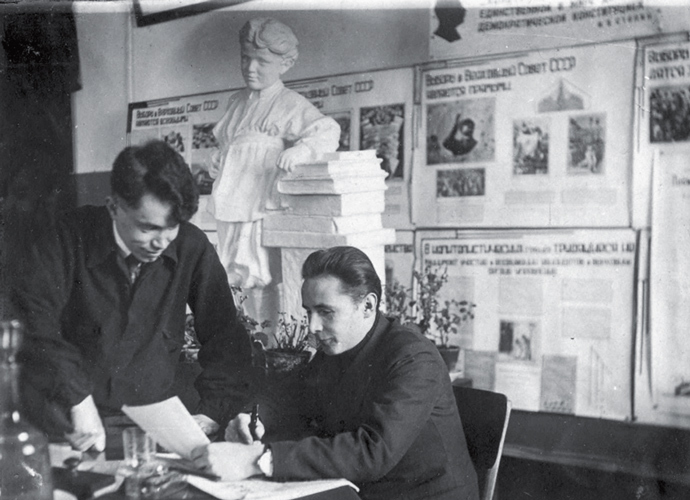 Пока формирующиеся пролетарии с помощью дневников занимались самовоспитанием и приобщением к коммунистическим ценностям, дневник Михаила Булгакова конфискует ГПУ; после возвращения тетрадей писатель уничтожает записи. На этом фоне чудовищным и абсурдным представляется усердное ведение записей в пролетарской среде. Программным примером открытости коммунистов перед своим обществом стали полупубличные дневники. Леонид Потемкин, в будущем замминистра геологии СССР, «написав одно из первых писем к Жирковой, прочел его своему другу Николаю Алейникову (который тоже запечатлен на фотографии). Николай попросил Леонида переписать для него это письмо, “обнаружив в нем что-то интересное”». Хелльбек анализирует этот снимок, на котором Потемкин ведет дневник за столом в залах Ленинки. За юным коммунистом отечески наблюдает бюст Ильича.