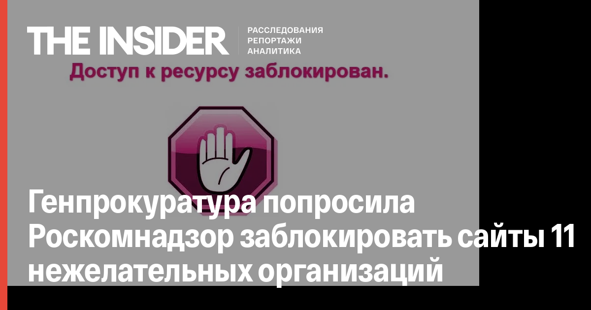 Генеральная прокуратура РФ обратилась в Роскомнадзор с требованием ограничить доступ к сайтам 11 нежелательных организаций. Перечень организаций опубликован на сайте Министерства юстиции.