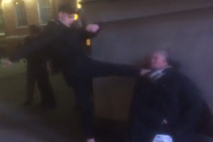 В интернете появилось видео, на котором видно, как на площади Восстания рядом с ТЦ «Галерея» молодой человек бьет бездомного мужчину в лицо ногой.