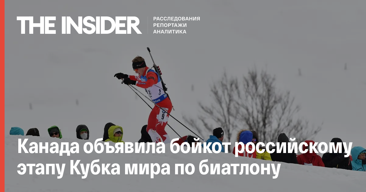 Сборная Канады по биатлону будет бойкотировать этап Кубка мира в Тюмени из-за «неуверенности в антидопинговой системе России». Об этом сообщает норвежская телевизионная компания NRK со ссылкой на письмо Федерации биатлона Канады к президенту Международного союза биатлонистов (IBU) Андресу Бессебергу.