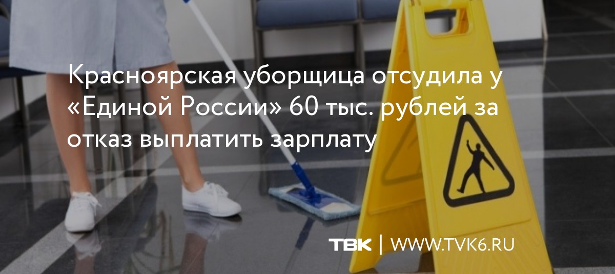 Красноярская уборщица отсудила у «Единой России» 60 тыс. рублей за отказ выплатить зарплату