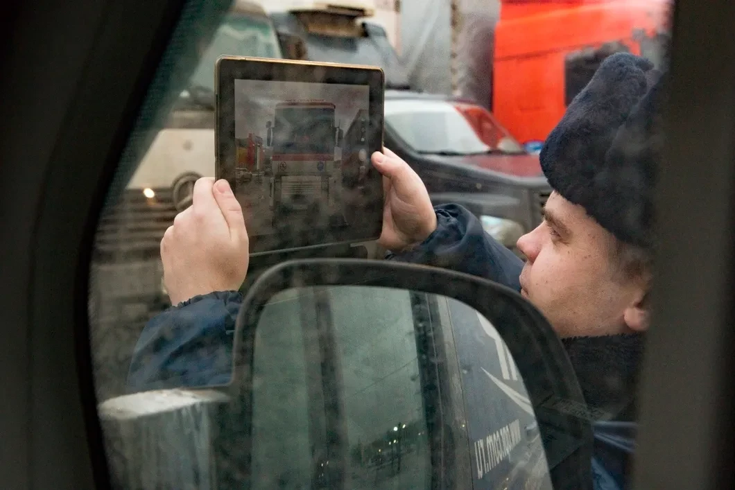 Новая подмосковная стоянка дальнобойщиков разместилась на 84-м километре МКАД, напротив торгово-развлекательного комплекса «Весна». Чтобы загнать сюда машины, водителям пришлось пойти на небольшую хитрость: припарковать на Юго-Востоке кольцевой, в «липовом» месте фургон с флагами. Пока его окружала полиция, основные силы около трех часов ночи успели заехать сюда, на север. Но выспаться водителям не удалось, уже к девяти утра первая полицейская машина показалась напротив торгового центра. К десяти тут их было пять штук. Плюс газель. К двенадцати на стоянку пожаловало и полицейское начальство.