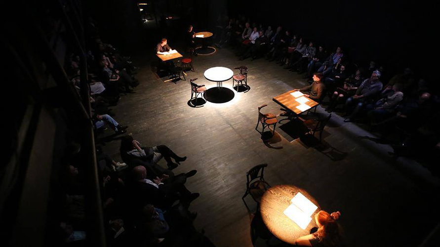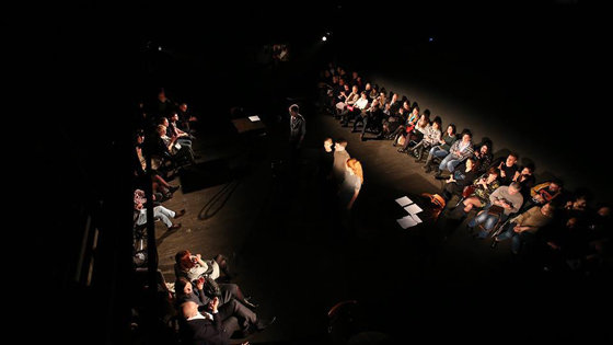 © «Мандельштамфест» Заключительная сцена в «Любовной истории» — одном из лучших у Волкострелова и, как водится, трагически недооцененном спектакле 2013 года по рассказу Хайнера Мюллера — повторялась до тех пор, пока последний человек не покинет зал: режиссер перераспределял власть в пользу публики, предоставляя ей решать, когда артисты пойдут домой. В двухлетней давности «Лекции о нечто» вам дают переключать каналы видео и звука, но есть нюанс: в каждой группе на трех человек приходится всего два пульта — а значит, одни зрители несут ответственность перед другими, узнавая на своем опыте, что значит быть художником.