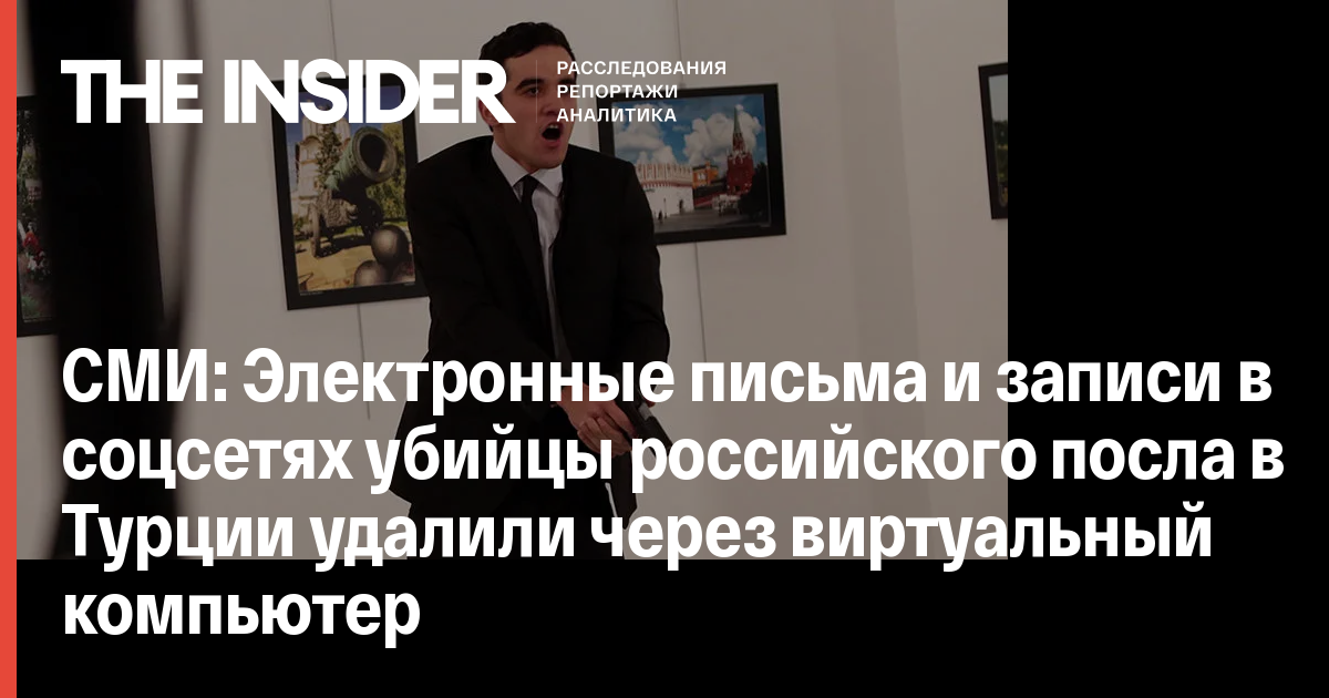 Турецкая газета Hurriyet со ссылкой на выводы следствия сообщает, что записи в социальных сетях и электронные письма, которые отсылал офицер полиции Мевлют Мерт Алтынташ, который в декабре 2016 года убил российского посла в Турции Андрея Карлова, были удалены через виртуальный компьютер.