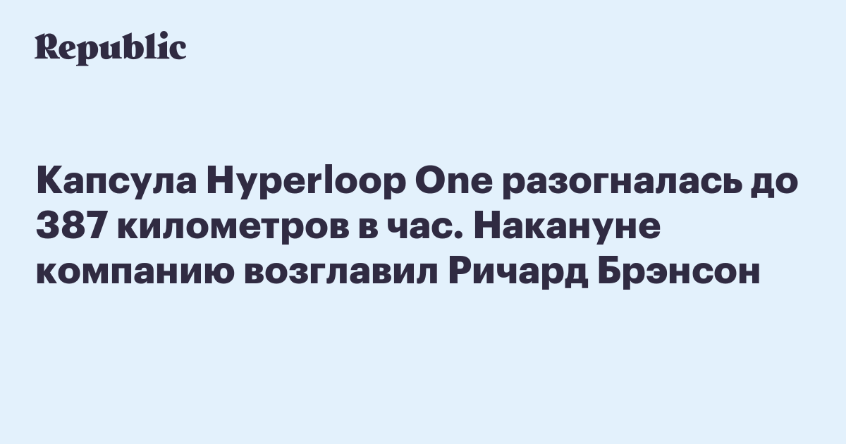 Капсула Hyperloop One разогналась до 387 километров в час. Накануне компанию возглавил Ричард Брэнсон